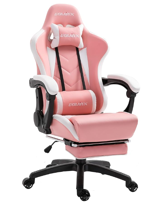 Silla Ergonómica para Videojuegos con Soporte Lumbar de Masaje, Respaldo de Silla de Oficina de PC, Silla Giratoria Ajustable con Reposapiés, Color Negro y Rosa