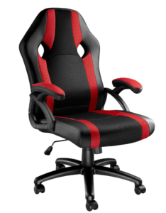 Silla Ergonómica Gaming, Silla de Estudio con Reposabrazos Ajustables, Mecanismo Basculante, Amortiguador de Gas, Giro de 360°, Office Chair, Acolchado Grueso, Gaming Setup, Color Negro y Rojo