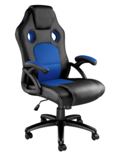 Silla Gamer Ergonómica, Ajuste de Altura, Silla de Escritorio de Oficina, Silla de Estudio con Acolchado Cómodo, Silla con Reposabrazos y Ruedas, Sillas Gaming para Ordenador, Color Negro y Azul