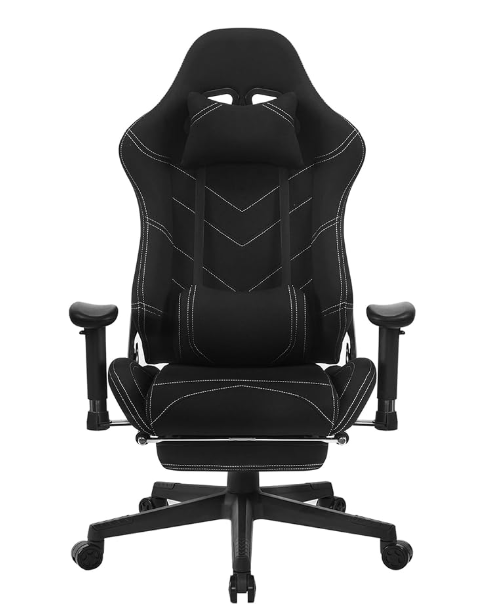 Silla Gaming Transpirable Tela, Silla Ergonómica Gaming con Reposacabezas, Cojín Lumbar y Reposapiés, Gamer Sillón Videojuegos, Livestreaming, Silla de Oficina y computadora, Color Negro